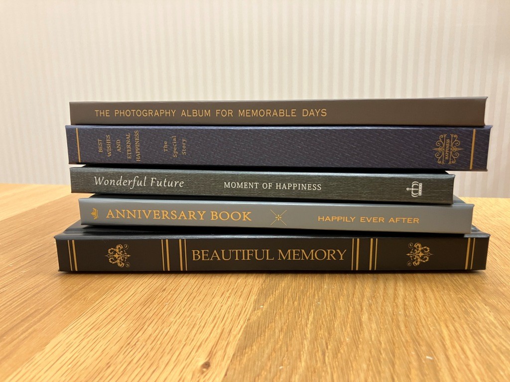 ウエディング、マタニティ、ニューボーン、ハーフバースディ、 誕生日、七五三、家族旅行 etc、アニバーサリーごとに 楽しみながらアルバムを揃えていくご提案です。 本棚に飾ったり、お部屋のインテリアとしても 写真の入らないフェイクブックとしてもご利用いただけます。