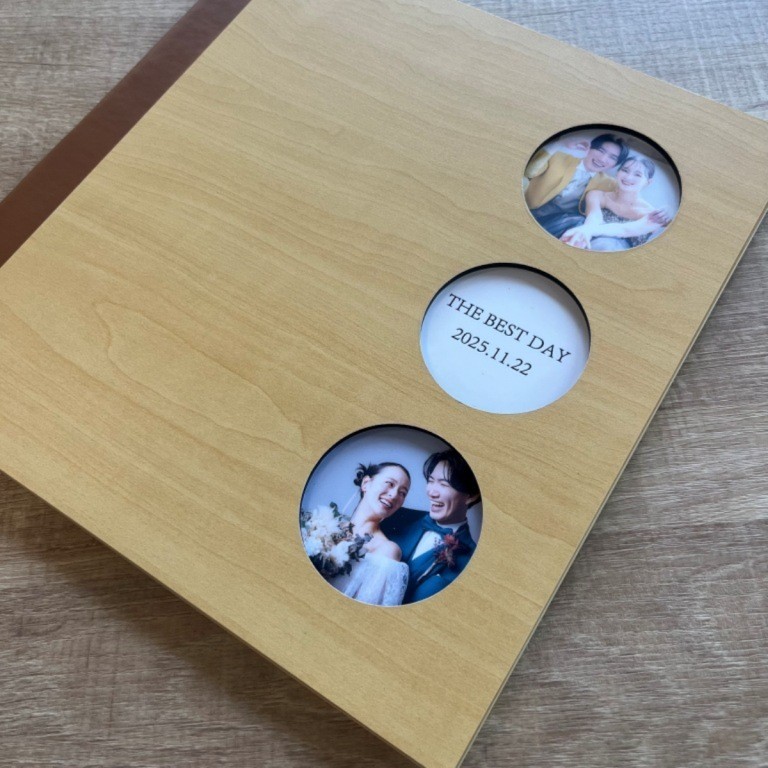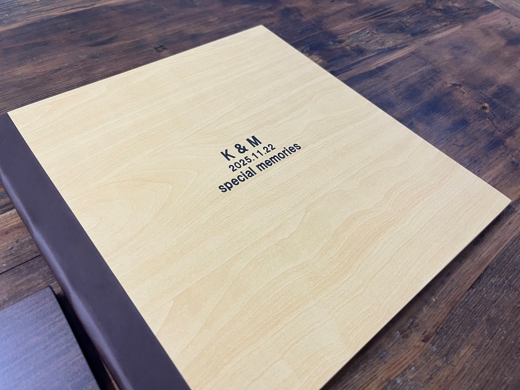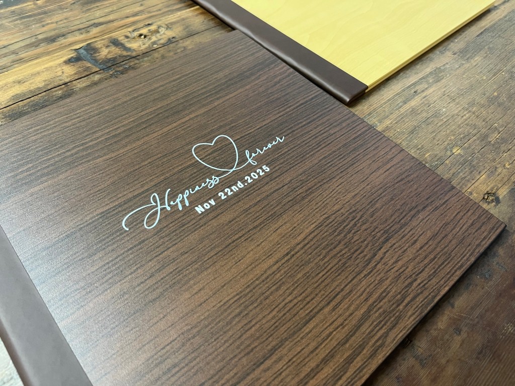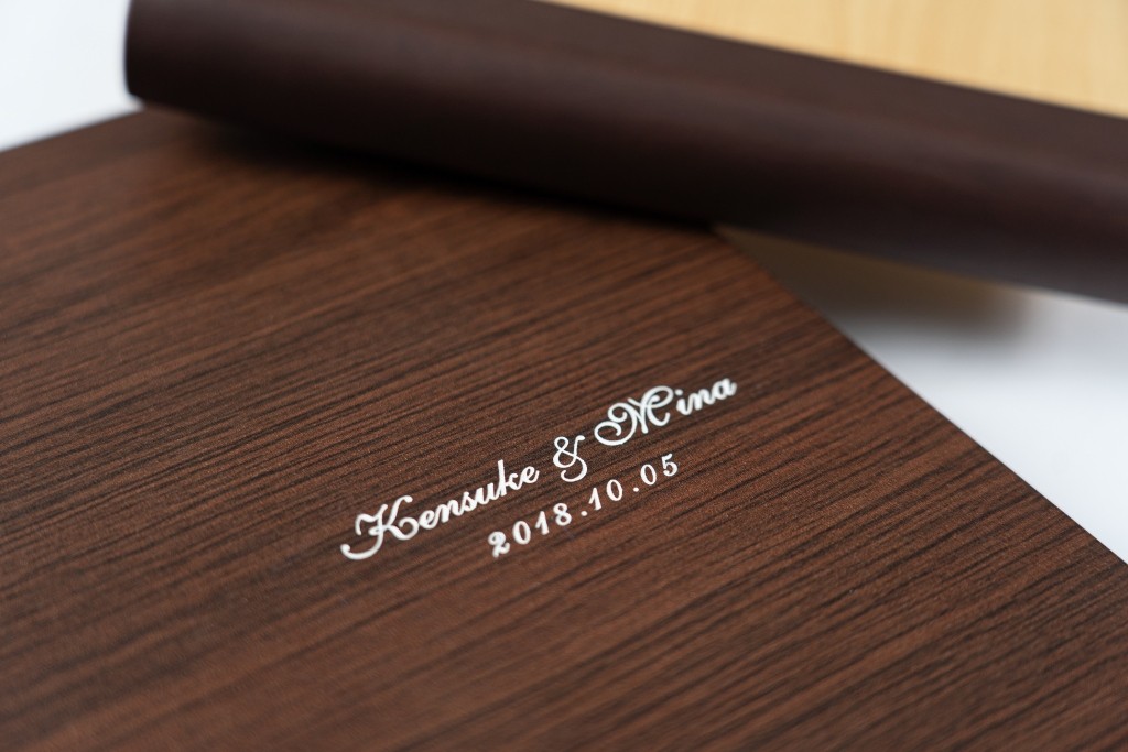 表紙デザインは、名前の刻印やくり抜きフォトタイプなど